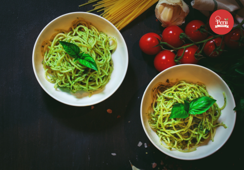 Los tallarines verdes son pasta peruana bañada en salsa verde cremosa hecha de albahaca